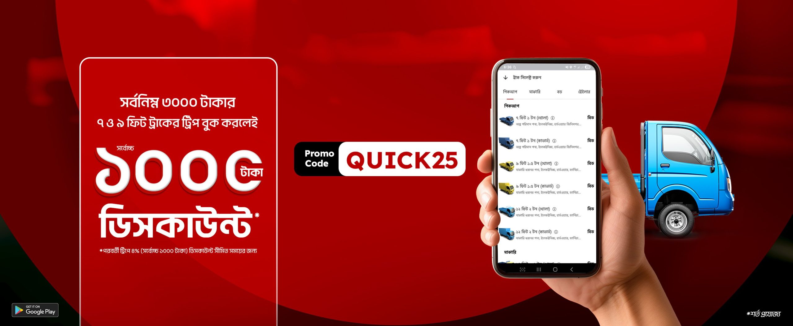 প্রোমো কোডঃ QUICK25 ব্যবহার করে উপভোগ করুন সর্বোচ্চ ১,০০০ টাকা (৪%) ছাড়!