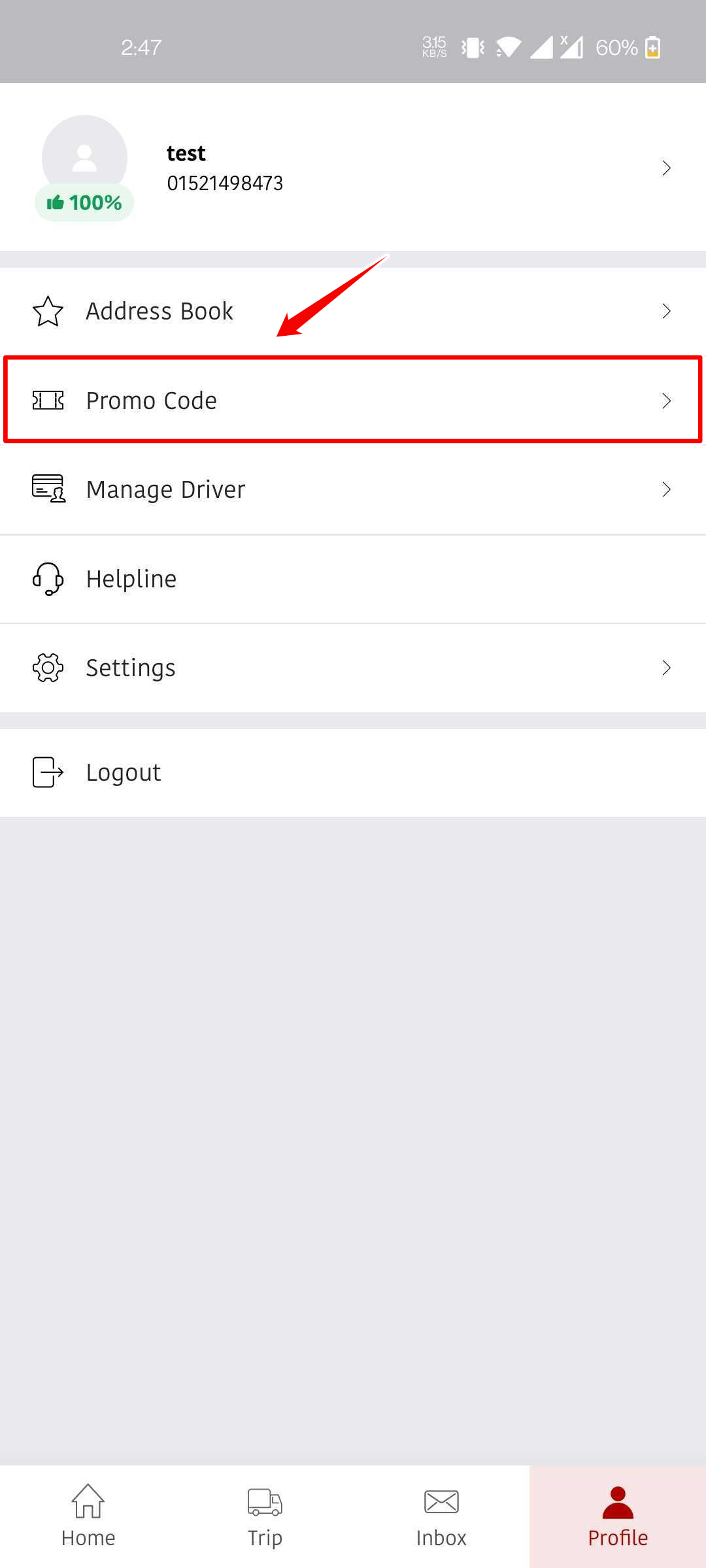 How to add promo code from the profile: